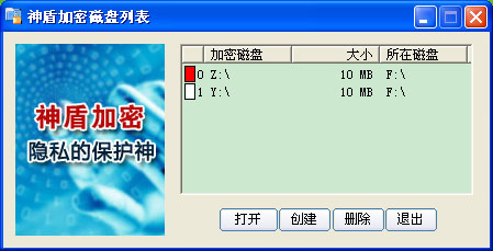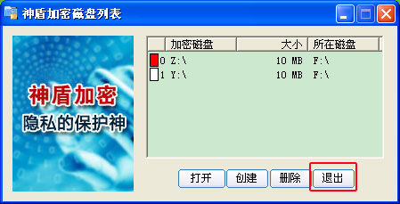 也可以點擊神盾加密磁盤列表對話框下面的“退出”按鈕,退出軟件。